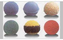 3、金剛砂膠球 金剛砂膠球分為全金剛砂膠球和半金剛砂膠球兩種。金剛砂膠球適用于清除各種結(jié)垢沉積較多的管道,但對(duì)管子有傷害,一般不長期使用,特別銅管更慎用。 有效去除硬質(zhì)結(jié)垢,如:碳酸鈣。適用于鋼管、不銹鋼管換熱器。